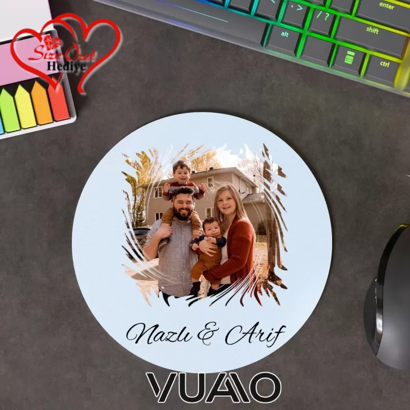 - Kişisel dokunuşunuzu yansıtan özel tasarımıyla, sevdiklerinizin veya kendinizin ismiyle özelleştirilmiş bir mouse pad deneyimi sunar.; - 19.5 cm çapında ideal boyutu sayesinde ergonomik kullanım sağlar ve masaüstünüzde şık bir görünüm oluşturur.; - Kaymaz taban özelliği ile masanızda sabit kalır ve oyun sırasında veya uzun süreli kullanımlarda bile yerinden oynamaz.; - Baskılı yüzeyi, yüksek çözünürlüklü fotoğraflarınızla kişiselleştirilebilir; böylece favori anlarınızı her gün yanınızda taşıyabilirsiniz.