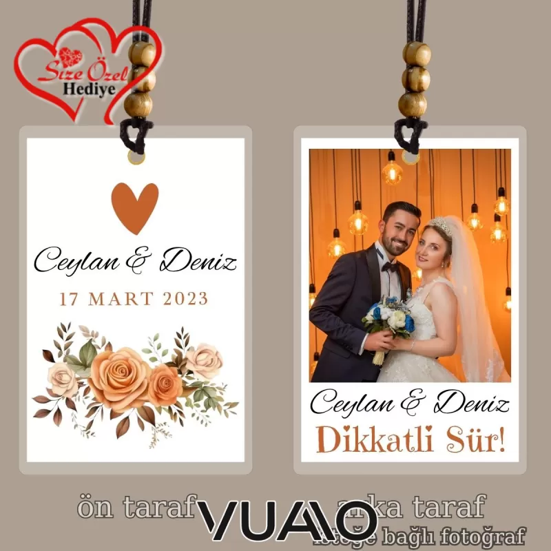 Sıradan aksesuarlara veda edin! Aracınızın iç mekanını en değerli anılarınızla ve sevdiklerinizin isimleriyle kişiselleştirmenin en şık yolu bu özel dikiz aynası süsünden geçiyor. Her bakışınızda size tebessüm ettirecek, yolculuklarınıza anlam katacak, sadece size özel bir tasarım!