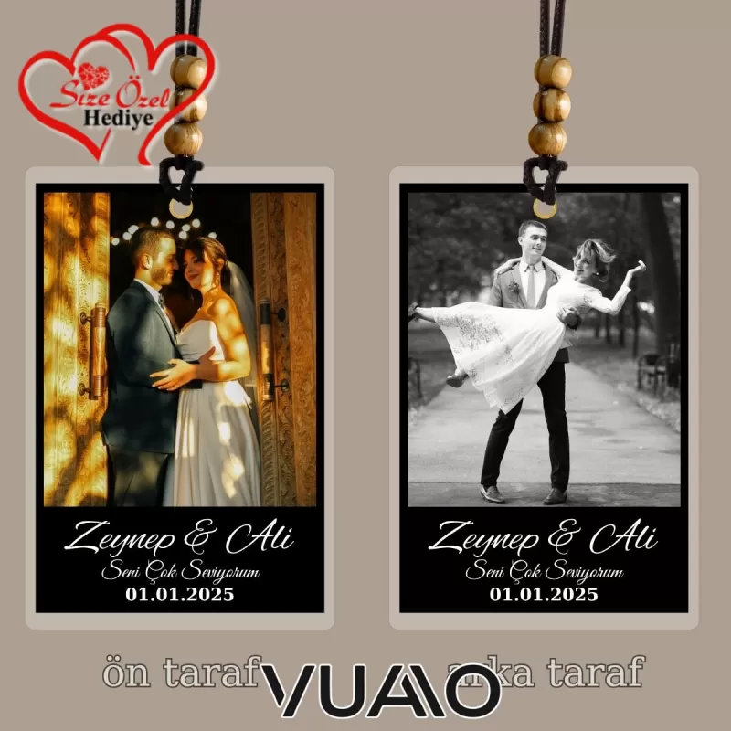 Sıradan aksesuarlara veda edin! Aracınızın iç mekanını en değerli anılarınızla ve sevdiklerinizin isimleriyle kişiselleştirmenin en şık yolu bu özel dikiz aynası süsünden geçiyor. Her bakışınızda size tebessüm ettirecek, yolculuklarınıza anlam katacak, sadece size özel bir tasarım!