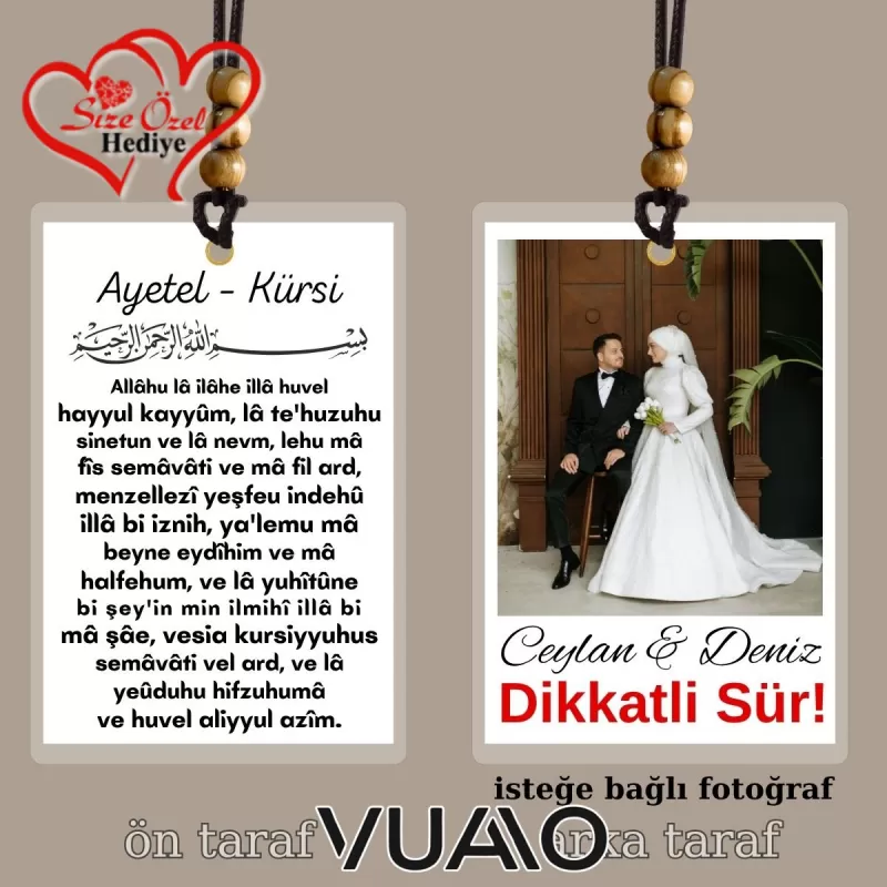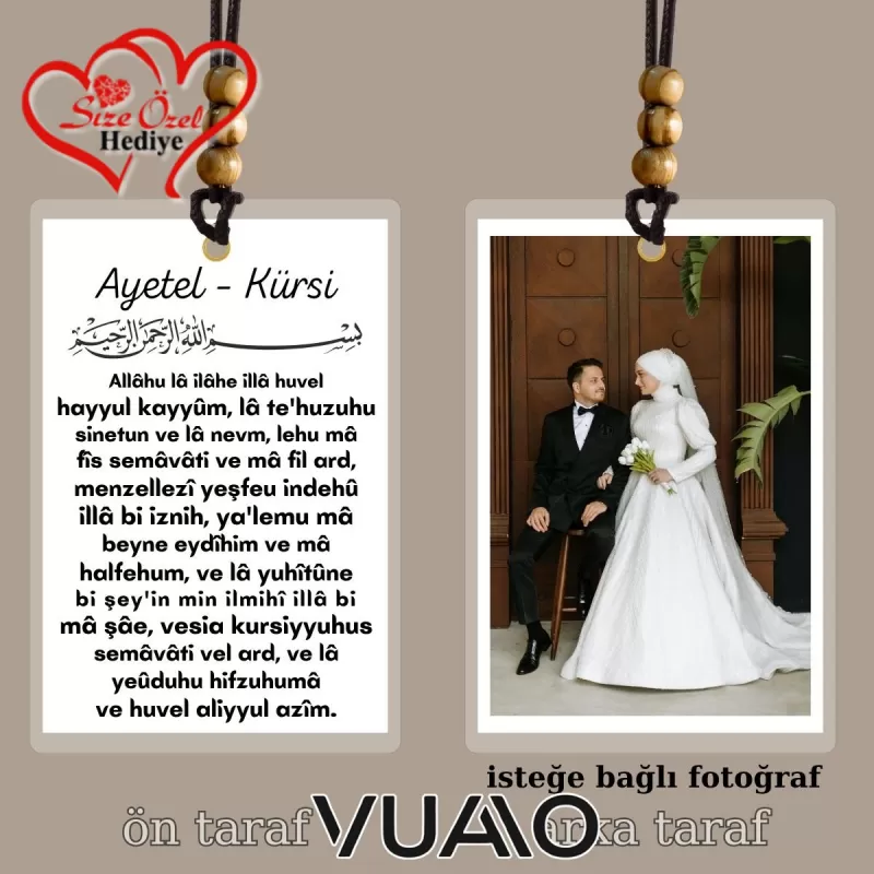 Kişiye Özel İsimli ve Fotoğraflı Ayetel - Kürsi Türkçe Araba Süsü - Araba Dikiz Aynası Süsü