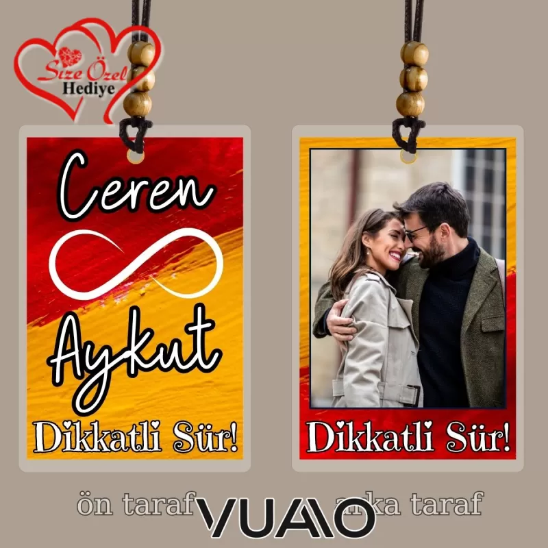 Sıradan aksesuarlara veda edin! Aracınızın iç mekanını en değerli anılarınızla ve sevdiklerinizin isimleriyle kişiselleştirmenin en şık yolu bu özel dikiz aynası süsünden geçiyor. Her bakışınızda size tebessüm ettirecek, yolculuklarınıza anlam katacak, sadece size özel bir tasarım!