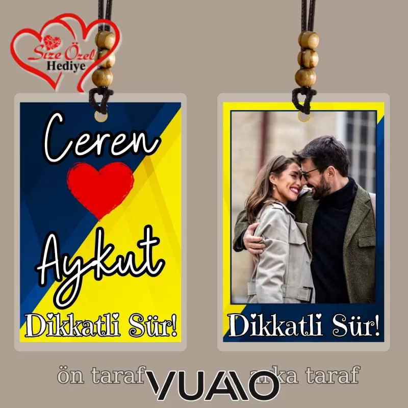 Sıradan aksesuarlara veda edin! Aracınızın iç mekanını en değerli anılarınızla ve sevdiklerinizin isimleriyle kişiselleştirmenin en şık yolu bu özel dikiz aynası süsünden geçiyor. Her bakışınızda size tebessüm ettirecek, yolculuklarınıza anlam katacak, sadece size özel bir tasarım!