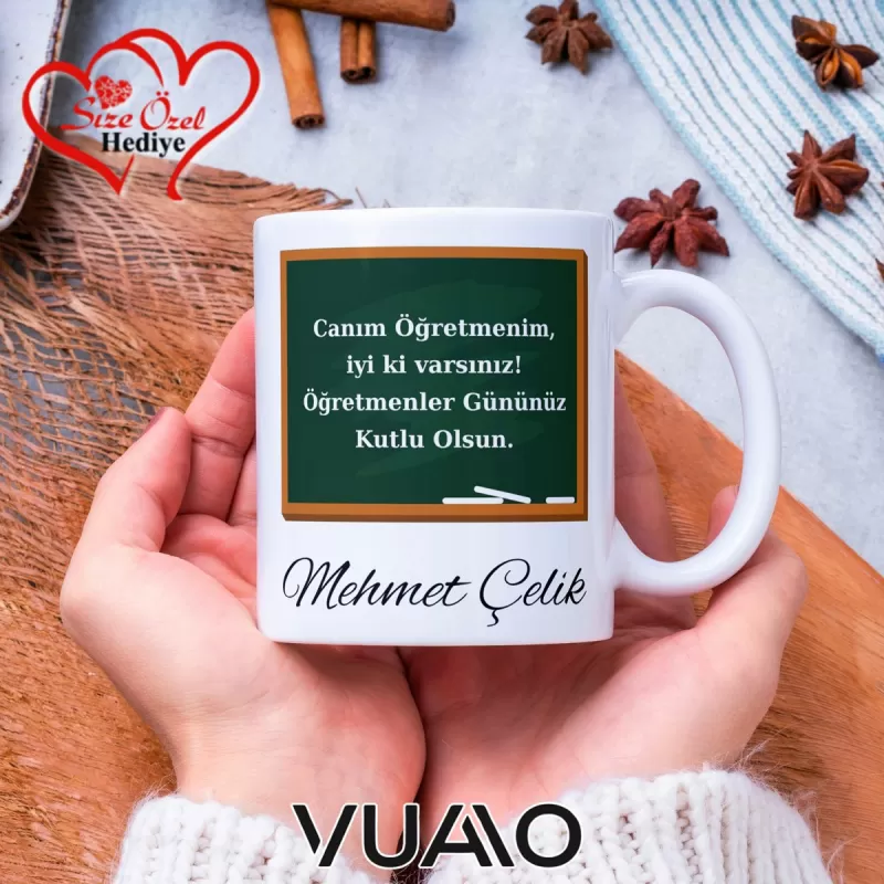 - Kişiye özel isim ve harf baskısı ile öğretmenler günü için anlamlı bir hediye seçeneği sunar.; - Öğretmenlerinize özel bir dokunuş katmak için idealdir.; - Gıda temasında güvenli kullanım sağlar, sağlık standartlarına uygun malzemeden üretilmiştir.; - Bakım talimatlarına uygun şekilde temizlenmesi kolaydır, uzun süreli kullanım için uygundur.; - Tema ve stil açısından geniş bir yelpazede seçenekler sunarak her zevke hitap eder.; - Menşei bilgisiyle yerel veya uluslararası üretim tercihine göre seçim yapma imkanı tanır.; - Materyal kalitesiyle dayanıklılık ve uzun ömürlü kullanım vaat eder.; - Hacim bilgisiyle ihtiyaç duyulan içecek miktarını karşılar ve pratik bir kullanım sunar.;