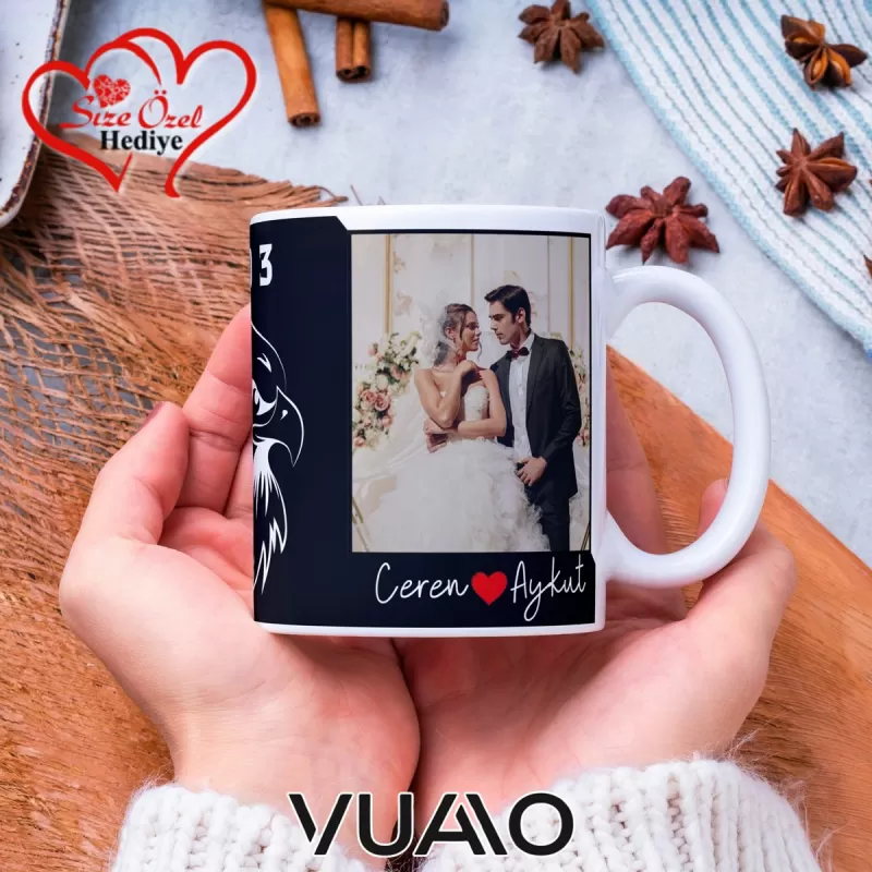 - Kişiye özel isim ve fotoğraf baskısı ile hediye olarak anlamlı bir seçenek sunar.; - Kartal deseni ile dikkat çekici ve özgün bir tasarım sergiler.; - Siyah ve beyaz renk kombinasyonu ile şık ve modern bir görünüm sağlar.; - Gıda temasında güvenle kullanılabilir olması, günlük kullanım için idealdir.; - Bakım talimatlarına uygun şekilde temizlendiğinde uzun ömürlü kullanım sunar.; - Tema ve stil açısından geniş bir yelpazede kişisel zevklere hitap eder.; - Menşei bilgisi ile ürünün kökeni hakkında detaylı bilgi verir.; - Materyal kalitesi, dayanıklılık ve estetiği bir arada sunarak kaliteli bir deneyim sağlar.; - Hacim bilgisi ile içecek kapasitesi hakkında net bir fikir edinmenize yardımcı olur.;